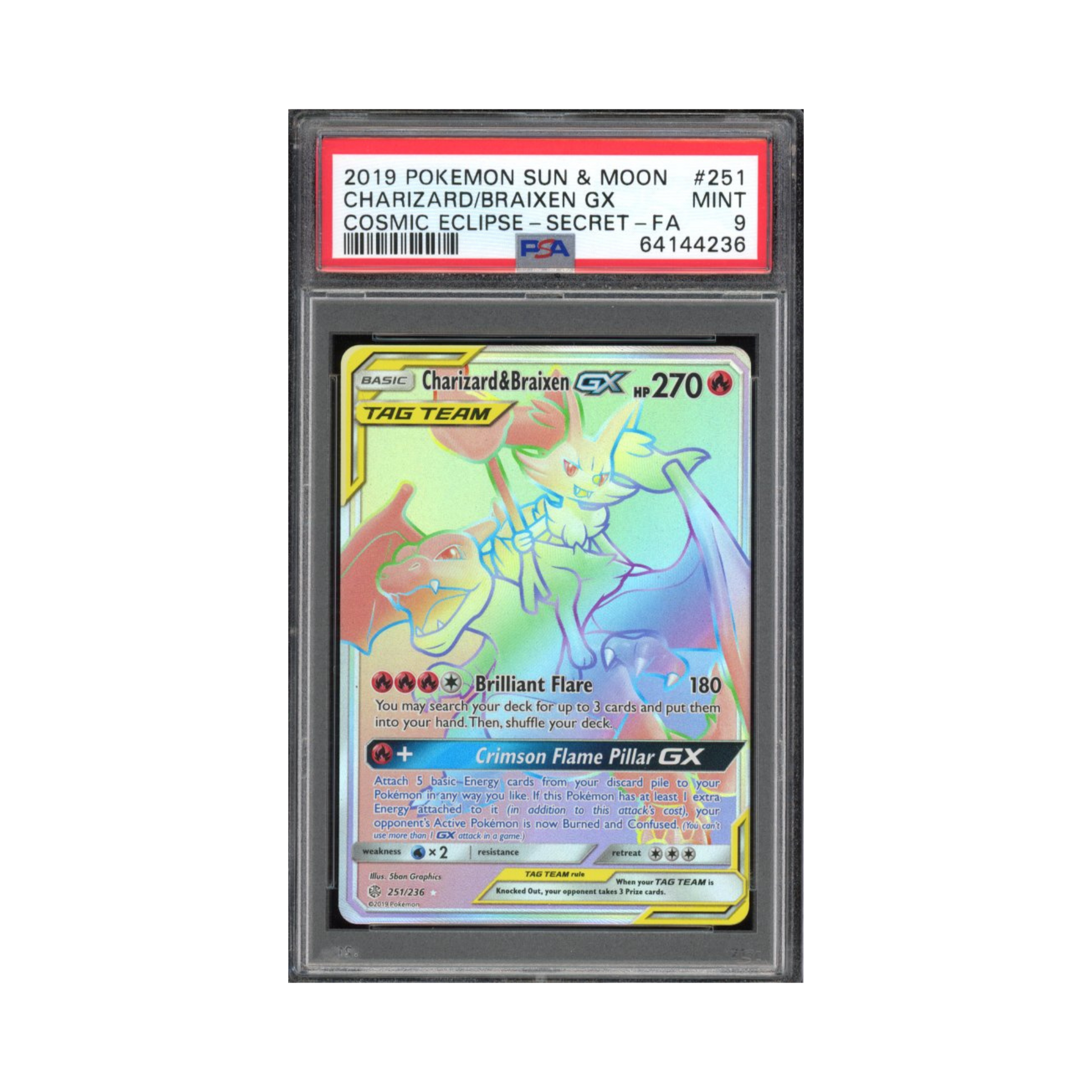 2019 Pokemon Sun & Moon Cosmic Eclipse FA Secret Charizard & Braixen GX #251 PSA 9