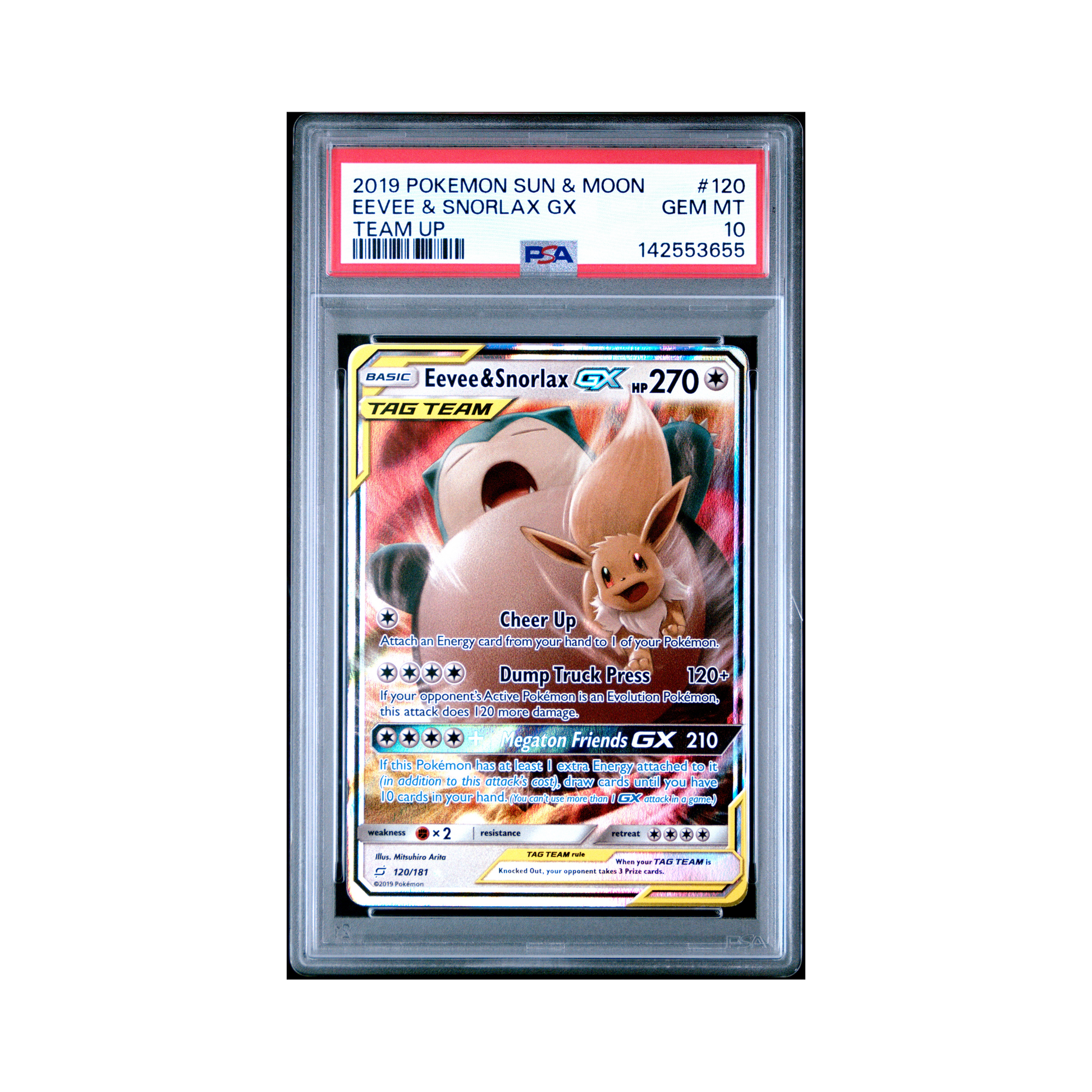 2019 Pokemon Sun & Moon Team Up Eevee & Snorlax GX #120 PSA 10