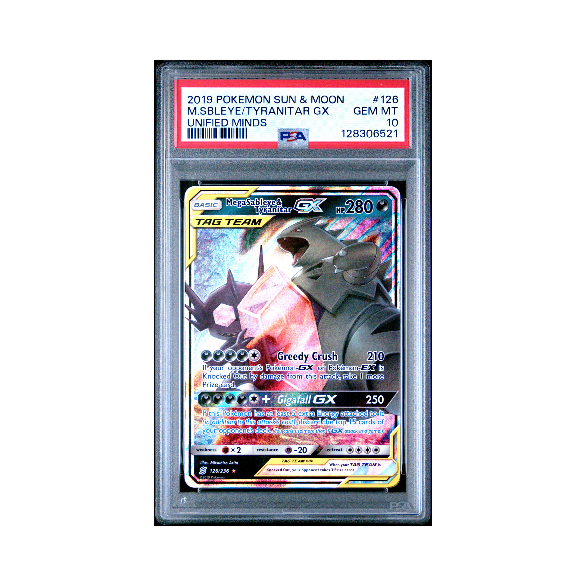 2019 Pokemon Sun & Moon Unified Minds Mega Sableye & Tyranitar GX #126 PSA 10