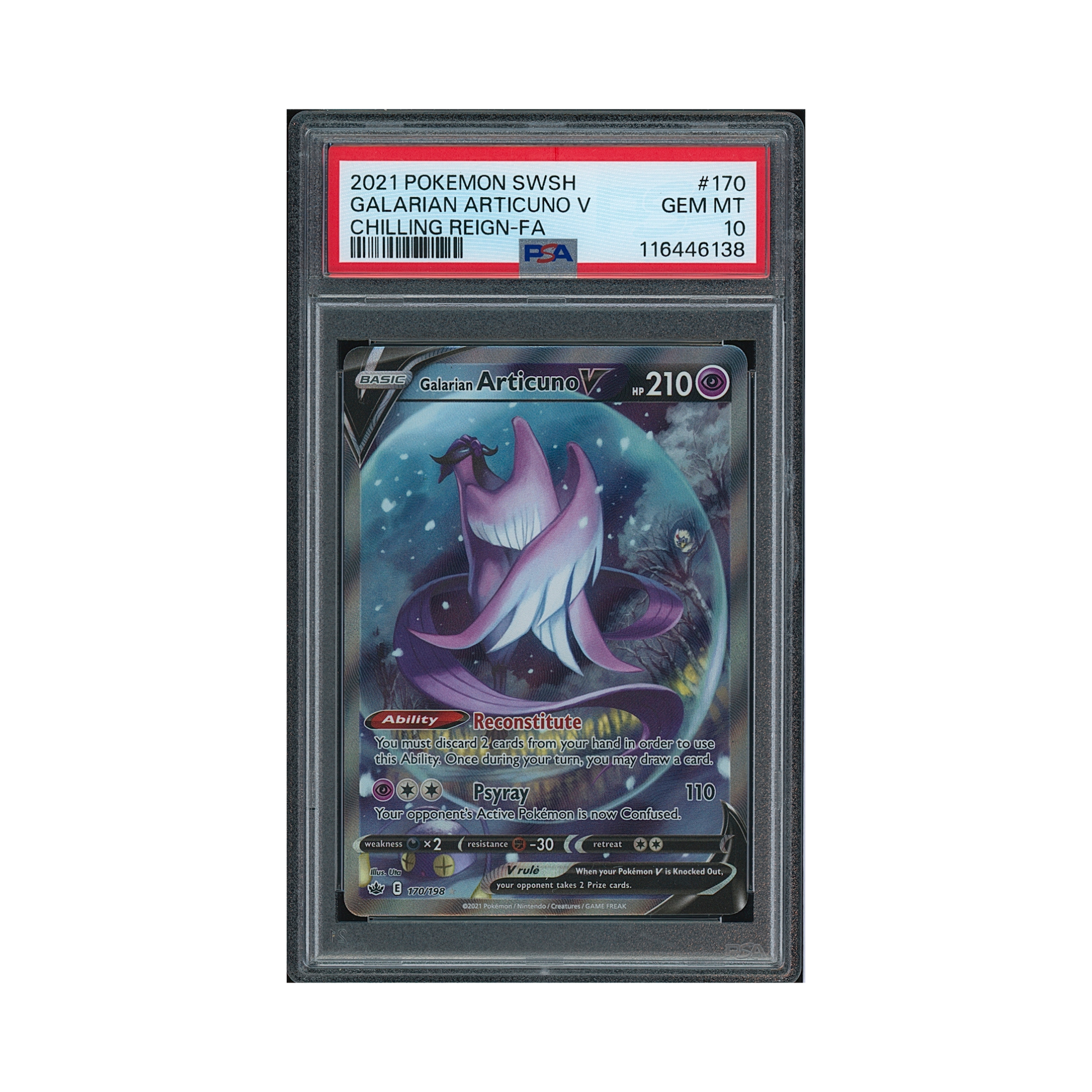 2021 Pokémon Sword & Shield Chilling Reign Galarian Articuno V #170 PSA 10