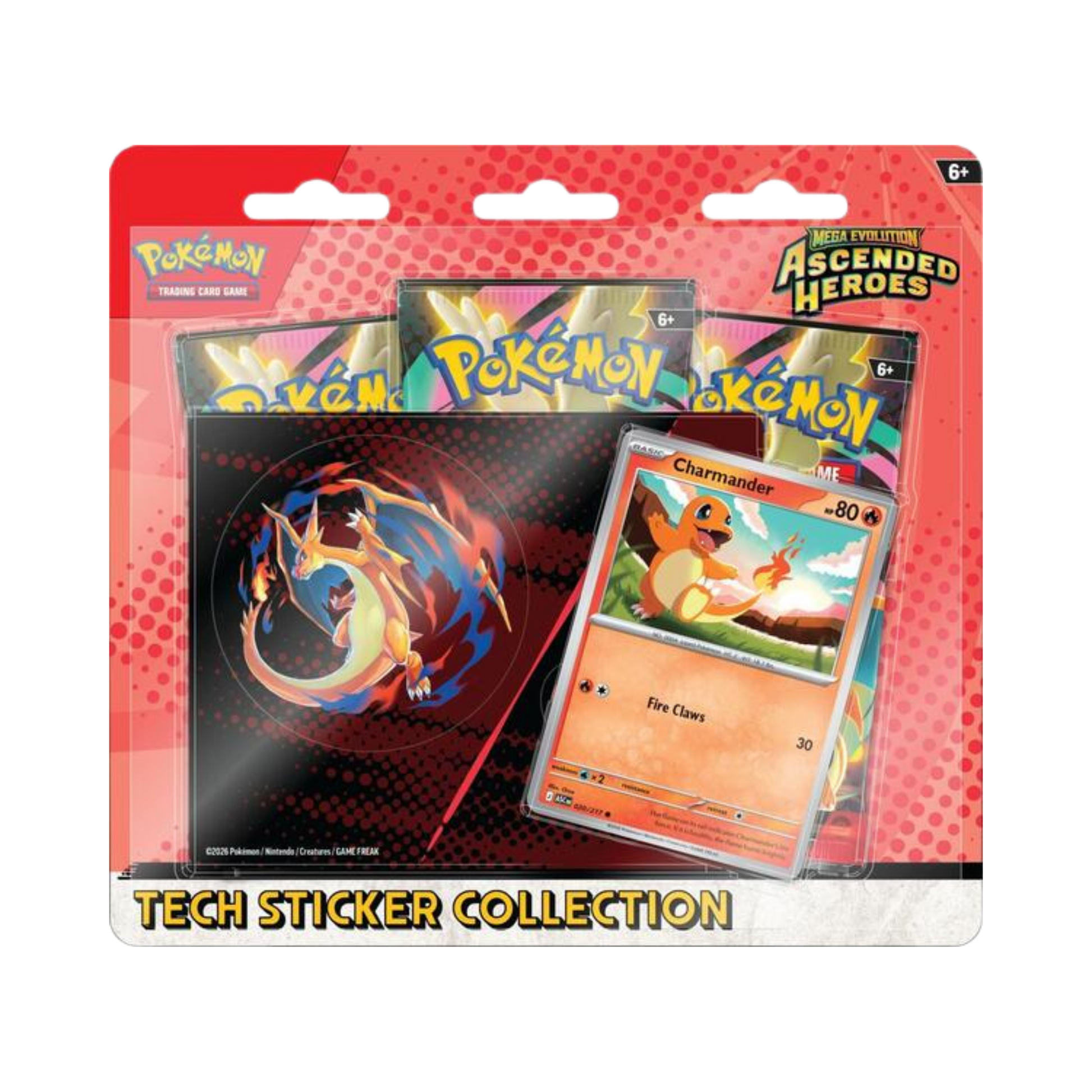 - 1 full-color tech sticker sheet featuring Charmander and Mega Charizard Y artwork