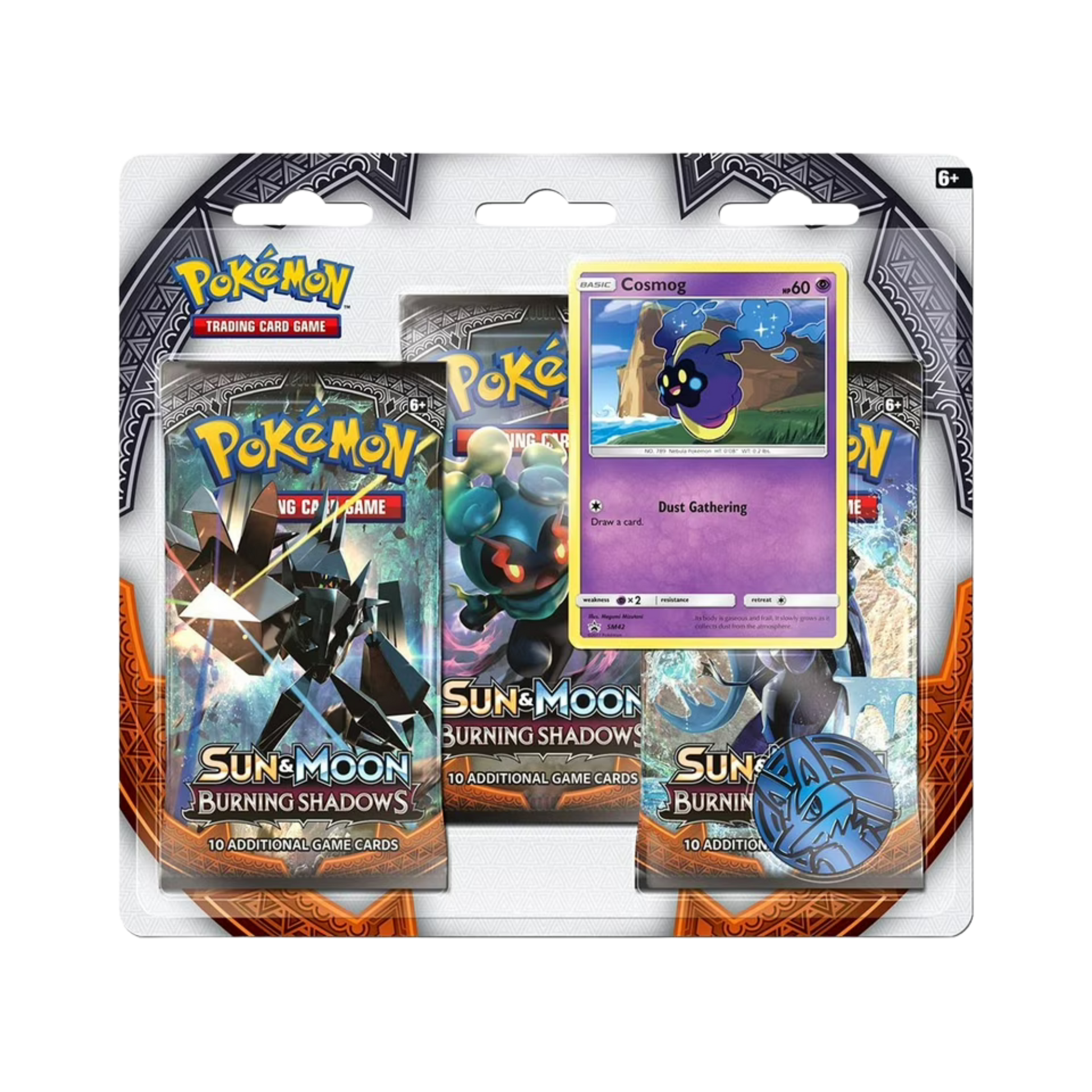 Explore the Sun & Moon — Burning Shadows expansion with this 3-Pack Blister featuring the Cosmog promo. Released in 2017, Burning Shadows introduced powerful cards like Necrozma-GX and the Marshadow suite, while highlighting the Nebula Pokémon with this Cosmog variant. The Cosmog 3-Pack Blister offers both sealed booster value and a polished promo card for collectors.