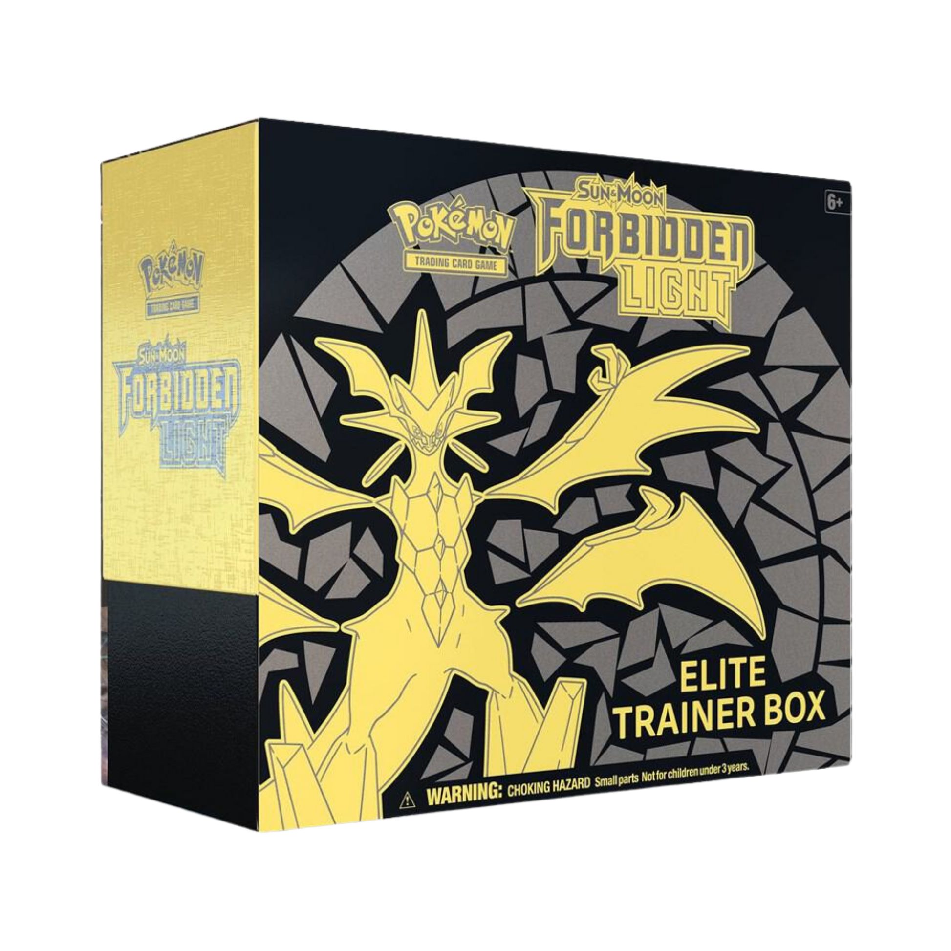 The Sun & Moon—Forbidden Light expansion shines a spotlight on Ultra Beasts and Kalos favorites like Greninja-GX, Zygarde-GX, and Lucario. This Elite Trainer Box, featuring Ultra Necrozma, includes everything you need for both play and display—premium sleeves, dice, markers, a player’s guide, and eight Forbidden Light booster packs. A centerpiece for collectors of the SM era and a powerful way to expand your deck-building options.
