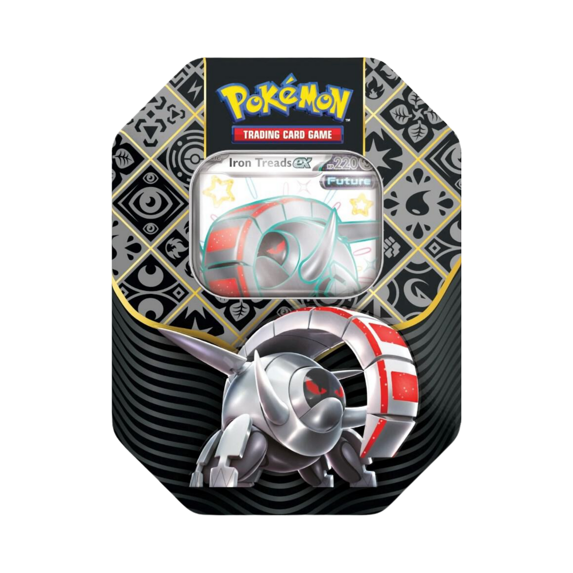 The Paldean Fates International Tin – Iron Treads ex showcases the futuristic Paradox Pokemon in a foil promo card, paired with booster packs from the Shiny-focused Scarlet & Violet – Paldean Fates expansion. A great pickup for collectors chasing the set’s standout cards or anyone looking to add another sealed Paldean Fates product to their collection.