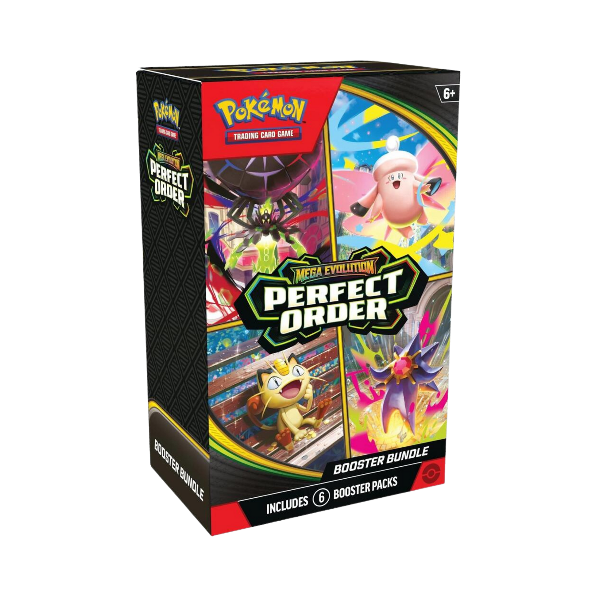 A sealed Perfect Order Booster Bundle — a curated collection of 6 Perfect Order booster packs at an excellent value. This bundle is ideal for collectors and players who want multiple chances at rare, ultra‑rare, and ex cards without purchasing a full booster box.