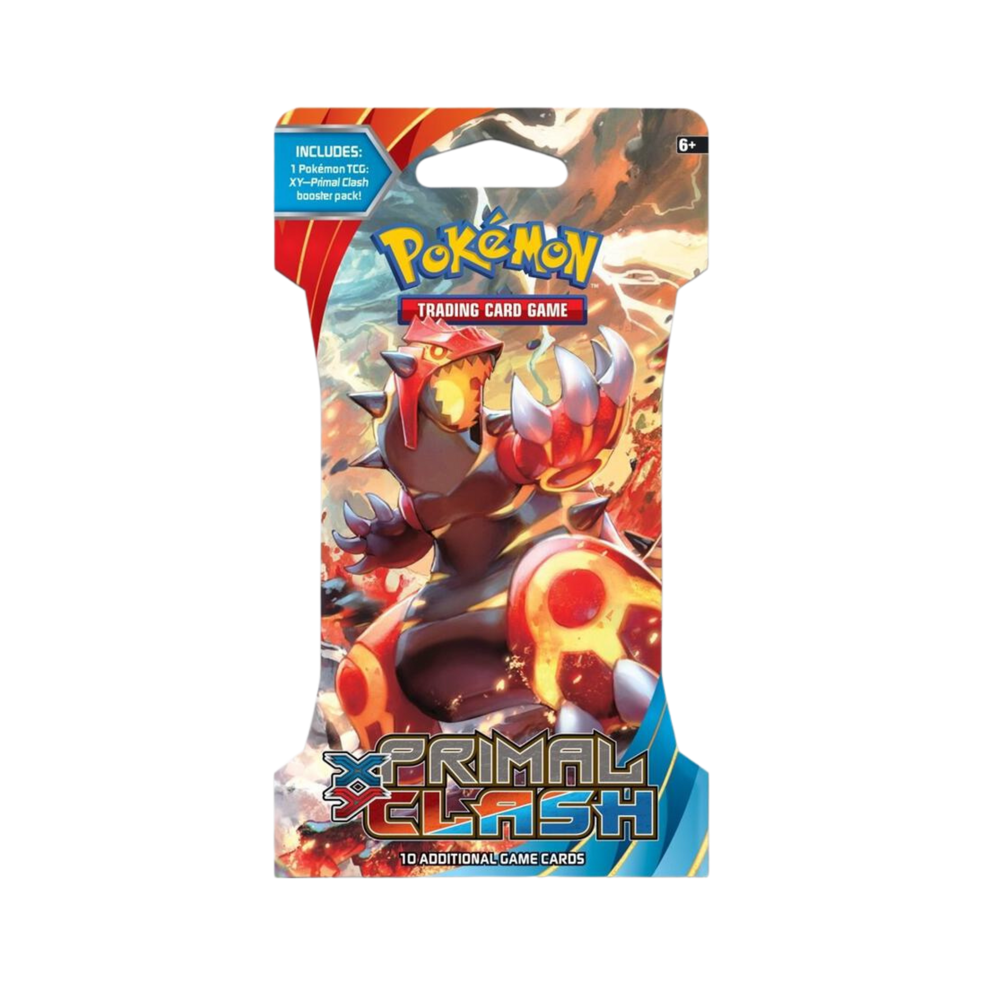 Tap into the ancient ferocity of the Pokémon TCG: XY — Primal Clash with this sleeved booster pack. Released February 4, 2015, the Primal Clash expansion introduces the Ancient Trait mechanic, alongside Primal Groudon-EX, Primal Kyogre-EX, and Mega Evolutions like Mega Gardevoir-EX and Mega Aggron-EX.