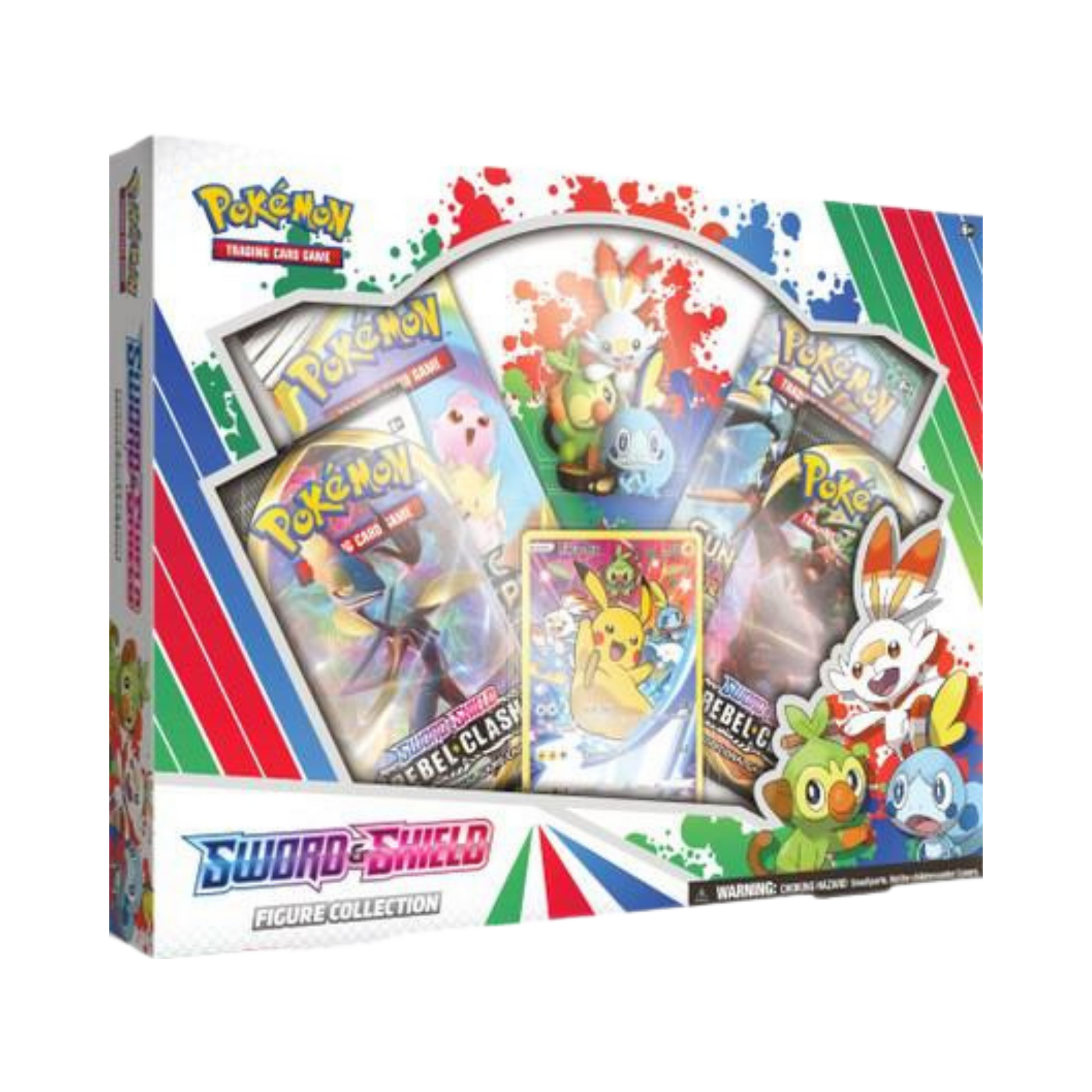 The Sword & Shield Figure Collection celebrates the start of the Galar era with Pikachu and the region's first partner Pokemon. This collector-friendly box includes a full-art foil promo card, a display figure, and booster packs from the Sword & Shield expansion.